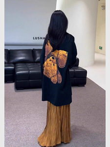 现货 2025超火穿搭一整套清冷松弛感黑色印花T恤半身裙两件套秋