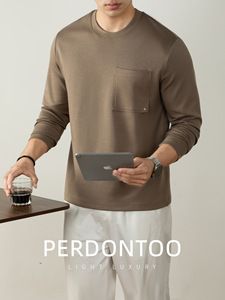轻熟风 l 60支丝光莫代尔口袋长袖T桖男士亲肤抗菌打底纯色体恤衫