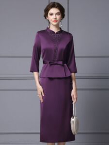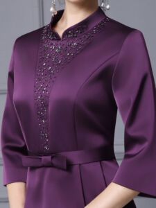 智丽宴会连衣裙2025新款秋装女人味微胖重要场合精致钉珠收腰裙子