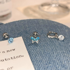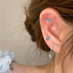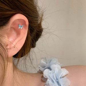 仙气蓝色蝴蝶锆石耳骨钉钛钢养耳洞睡觉免摘多耳洞搭配耳饰耳钉女