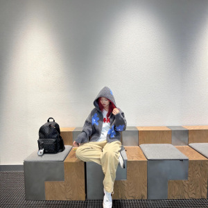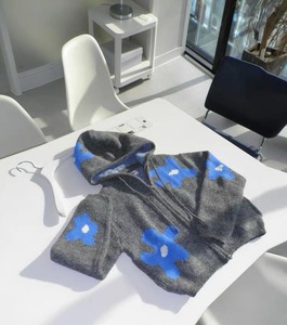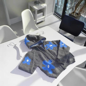 现货博主同款博主韩国小众潮牌提花连帽针织开衫毛衣外套