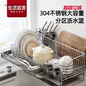 优勤厨房沥水架304不锈钢碗碟收纳架多功能家用厨房碗筷沥水篮