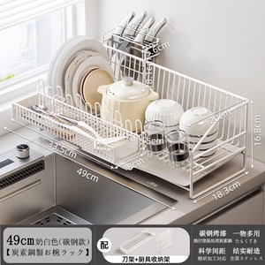 奶白碳钢款碗碟架【主架+杯架+刀架】