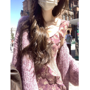 JUEMEI 蔷薇漫步 软糯开衫秋季新款针织上衣长袖宽松毛衣外套女装