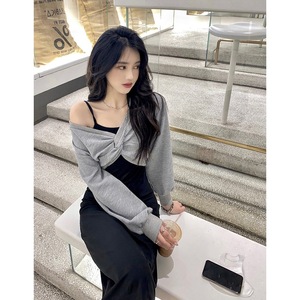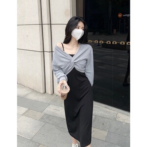 早秋穿搭套装女2025新款洋气别致漂亮针织衫吊带连衣裙搭配套装女