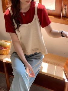 韩系甜美减龄叠穿针织吊带背心女春夏新款小个子毛衣马甲外搭上衣
