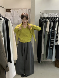 【MISS密思家】加厚斜纹肌理百搭弯刀裤休闲裤(配编织皮带)W696