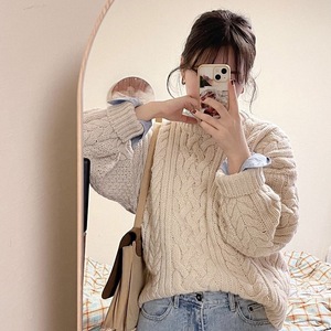 韩国 八奶麻花软糯毛衣女宽松高质感套头上衣针织衫