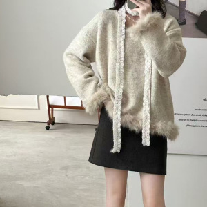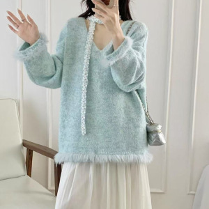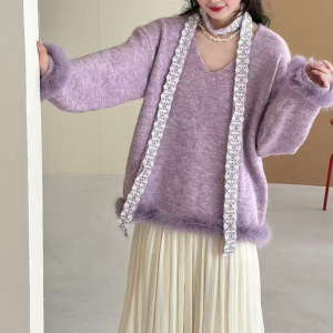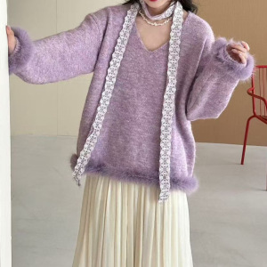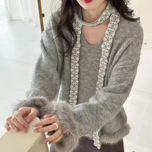 2025新款时尚气质蕾丝毛衣针织衫秋冬高级新款长袖慵懒上衣宽松