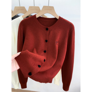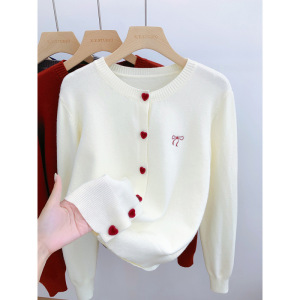 刺绣蝴蝶结长袖针织开衫外套女2025秋冬内搭打底衫毛衣短款上衣服