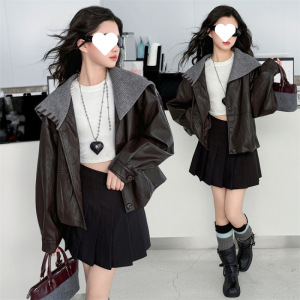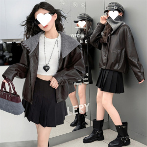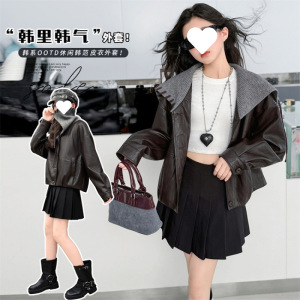 女童皮衣外套春秋2025新款儿童洋气时髦夹克中大童女孩春秋上衣潮