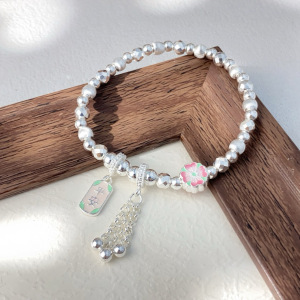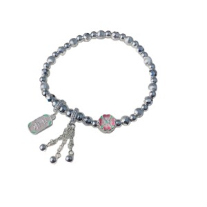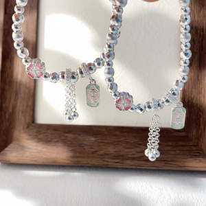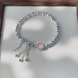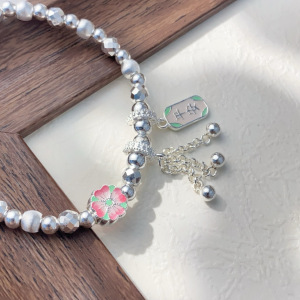 银佳银饰 足银999.9 珐琅四叶草串珠手串 潮流 精品现货一件代发