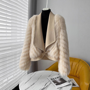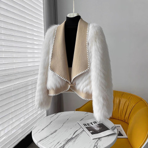 2025秋冬新款仿狐狸毛车条皮草外套女短款双面呢毛毛领时尚开衫
