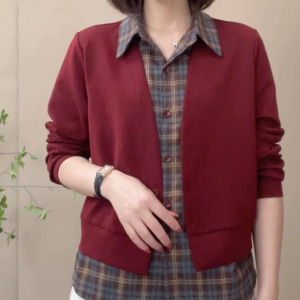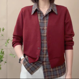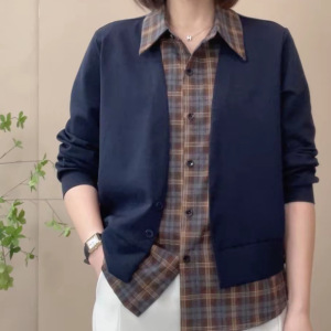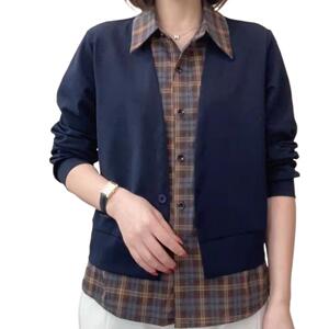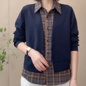 【现货】2025秋季新品时尚显瘦假两件设计感减龄拼接格子长袖上衣