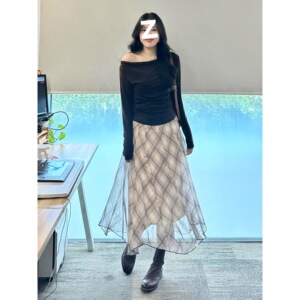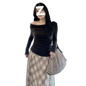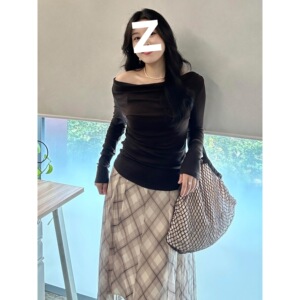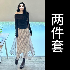 法式一字肩连衣裙子女2025新款早秋氛围感穿搭巨好看潮流长裙套装