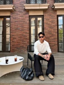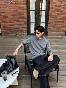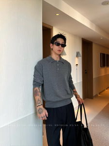 韩系高级感纽扣领正肩polo领长袖针织衫毛衣男老钱风休闲百搭上衣