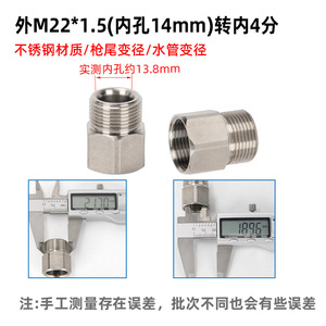 洗车机高压水枪尾部接头转换不锈钢接头高压钢丝管转换变径内外22