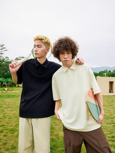 春夏新款男女潮牌港风纯棉宽松落肩短袖翻领POLO衫来图印Logo刺绣