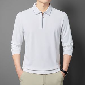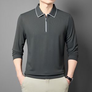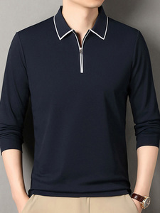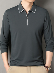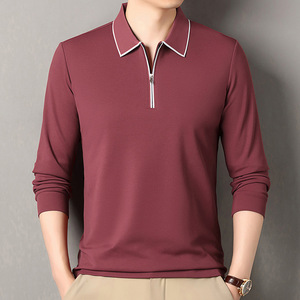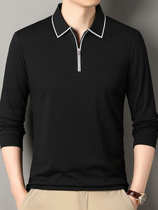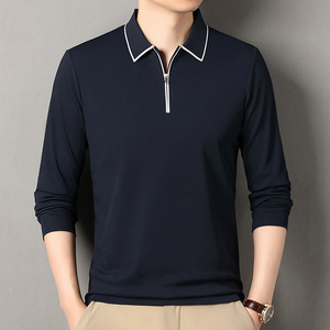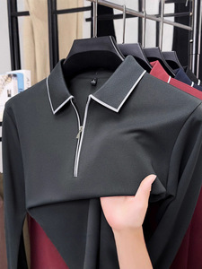 站外批发春秋新款拉链长袖polo衫男士休闲高档宽松翻领纯色T恤男