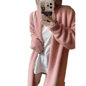 纯色中长款宽松过膝毛衣外套纯色新款慵懒温柔加厚针织开衫大衣女