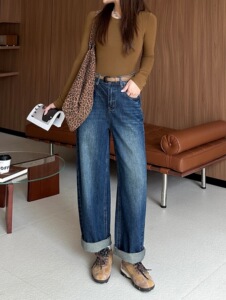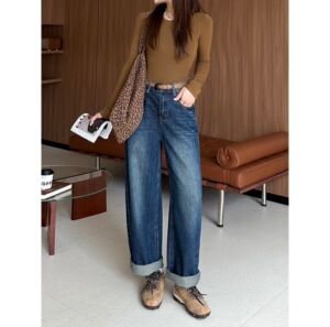 早秋新款牛仔裤女百搭刺绣阔腿裤高腰垂坠感宽松休闲直筒女款裤子