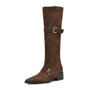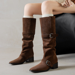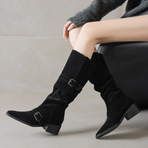 粗跟西部牛仔靴显瘦皮带扣不过膝美拉德骑士靴女冬2025新款堆堆靴