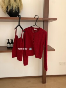 【WGWE】7166广州十三行女装2025秋装新款针织吊带开衫上衣两件套