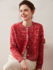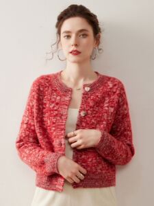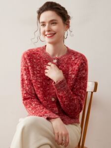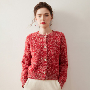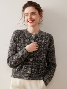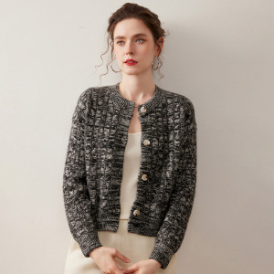 时尚秋冬新款圆领山羊绒衫女小香风开衫修身加厚羊毛显瘦外搭外套