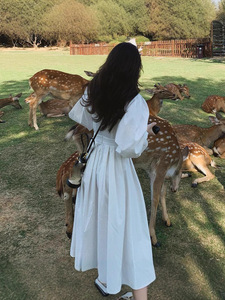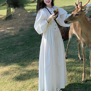 法式茶歇白色收腰长袖连衣裙女秋季 高级感气质显瘦长裙子 25新款