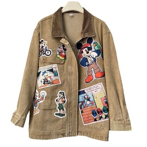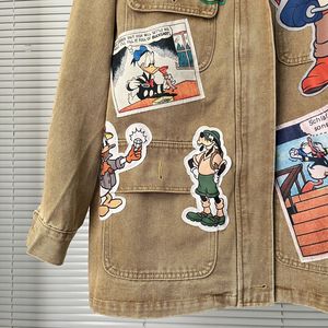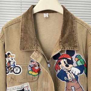 韩国2025秋季新款卡通可爱图案贴布工装外套BF风情侣牛仔外套上衣