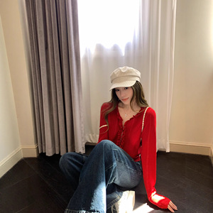 Hhyii 里斯本早秋 木耳边针织开衫女韩系早秋设计感修身长袖上衣