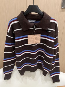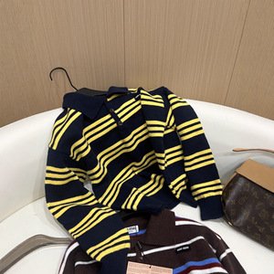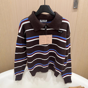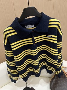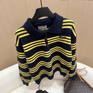 mm25秋冬新款慵懒氛围感条纹拼色翻领针织长袖