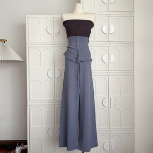 2025实拍秋季新款美女套装 翻边拼色抹胸+系带直筒裤