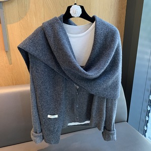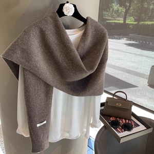 慵懒风100%全羊毛针织不规则大披肩女2025秋冬季打结保暖围巾外搭