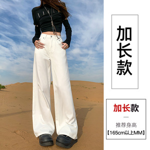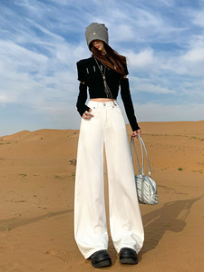 伊遇秋季新款白色阔腿牛仔裤女初秋新款高腰宽松显瘦直筒垂感拖地