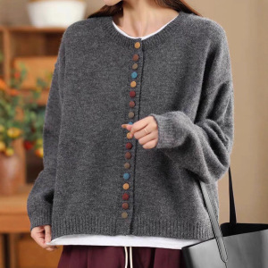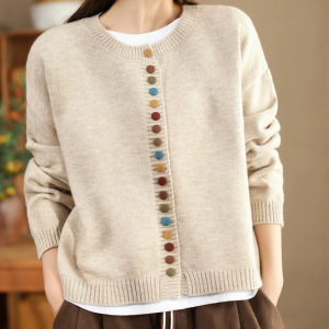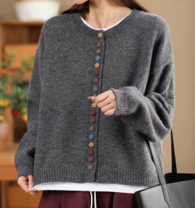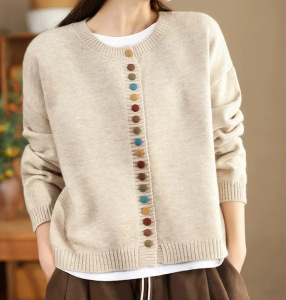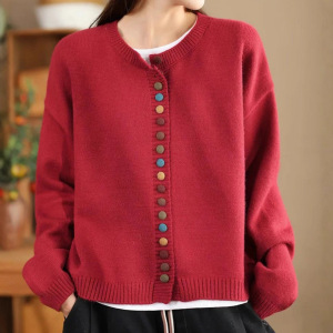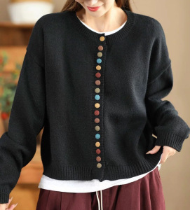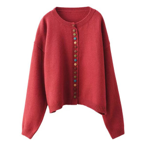 秋冬时尚休闲彩色纽扣毛衣外套女柔软保暖长袖针织开衫毛衣女装