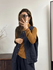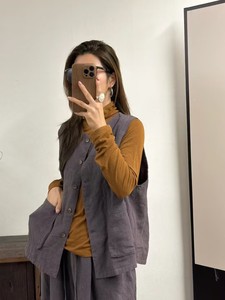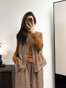 亚麻双层马甲女 秋款 文艺复古宽松显瘦双口袋单排扣休闲开衫坎肩