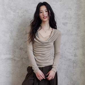 贰羊设计【予沁】假两件荡v领蕾丝针织衫上衣女2025秋季气质长袖