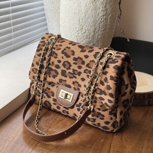 大容量复古豹纹包包女2025秋冬新款复古链条单肩包小众通勤托特包