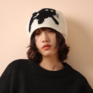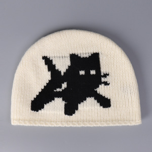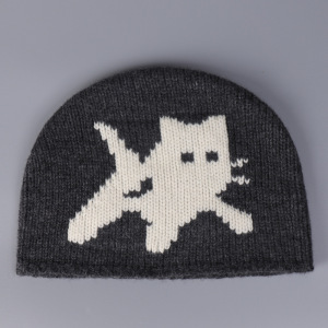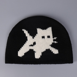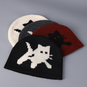 25秋冬高品质羊毛套头帽女韩国卡通小猫男女同款针织毛线包头冷帽
