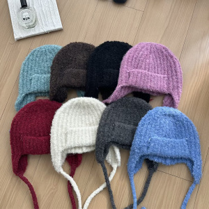 25秋冬定染软糯多色圈圈纱辫子飞行帽可爱韩系氛围感街头护耳帽子