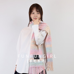 秋冬新款渐变含羊毛保暖围巾韩系氛围感加厚流苏针织百搭保暖披肩