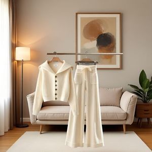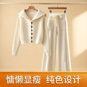 小七新品感时尚套装女针织开衫上衣遮肉阔腿裤两件套慵懒显瘦薪品