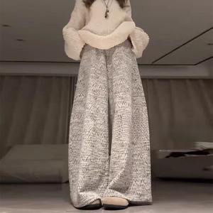 灰色慵懒小香风斜纹银丝阔腿裤女秋季新款高腰显瘦休闲时尚直筒裤