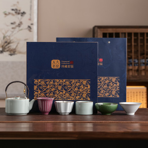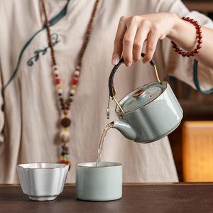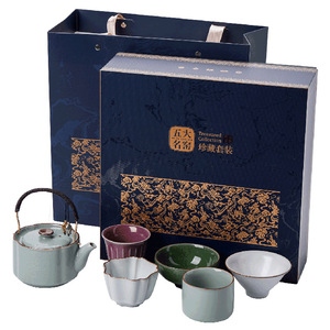 故宫文创五大名窑茶具提梁壶一壶四杯陶瓷泡茶壶功夫茶具礼盒套装