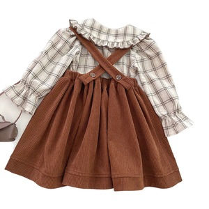 女童套装新款2025春秋长袖格子衬衫背带连衣裙小女孩休闲两件套