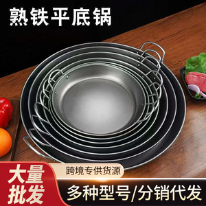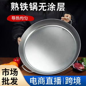 双耳平底铁锅无涂层煎饼果子摆摊煎饼锅烙饼铁板烧不易粘平底煎锅