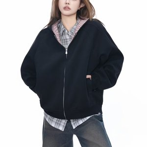连帽开衫宽松卫衣简约韩系格子撞色宽松百搭情侣男女同款秋外套潮