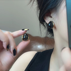 秋冬新款水墨纹黑金撞色水滴耳扣轻奢高级时尚百搭耳环女爆款耳饰