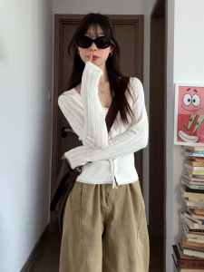 【白色】【巨好看设计感/内搭外穿针织衫/设计感镂空上衣/初秋/打底衫/高级感chic别致上衣/今年流